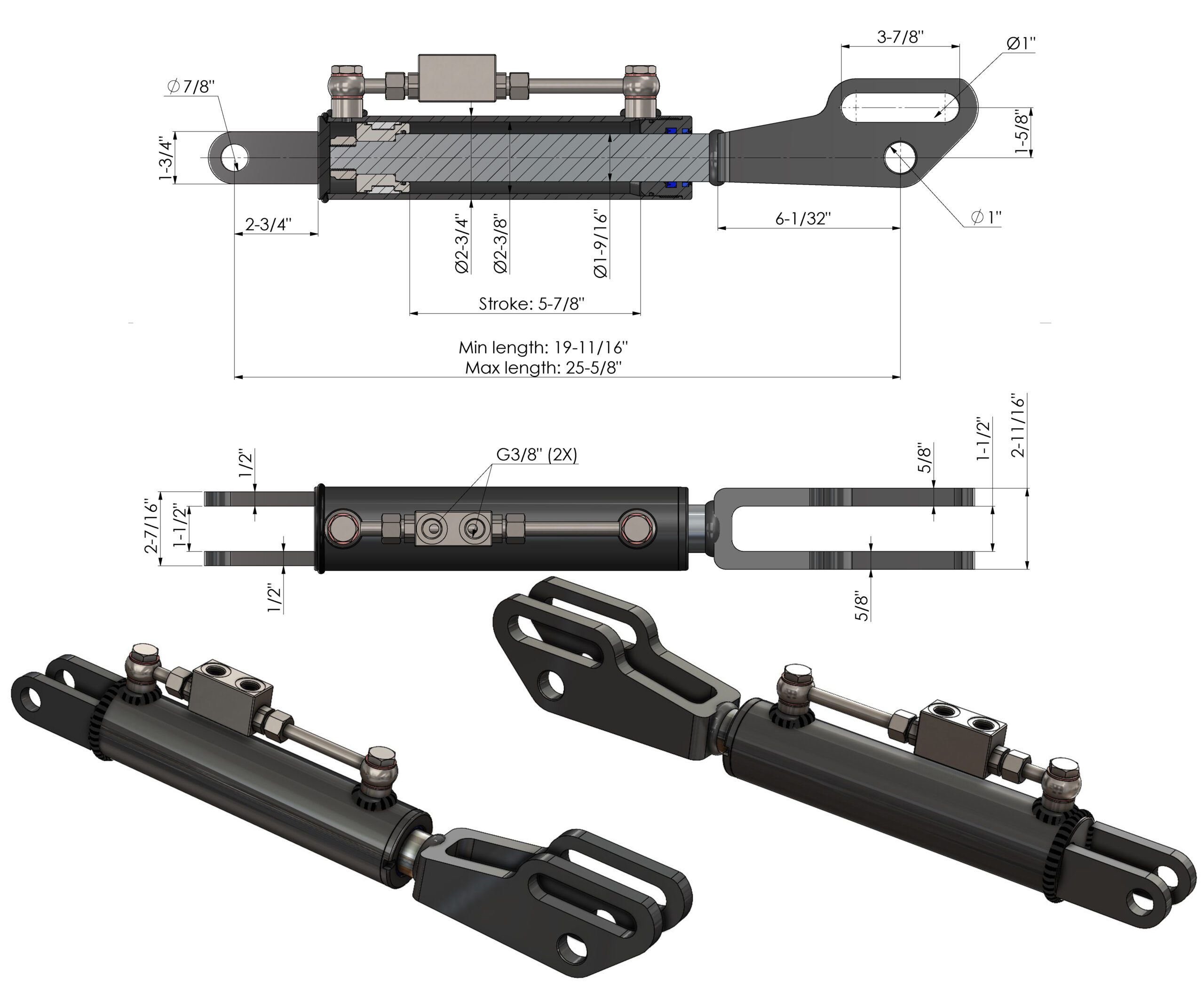 Cilindro de Enlace Lateral Hidráulico con Horquilla para varios Tractores ( 500 – 650 mm)