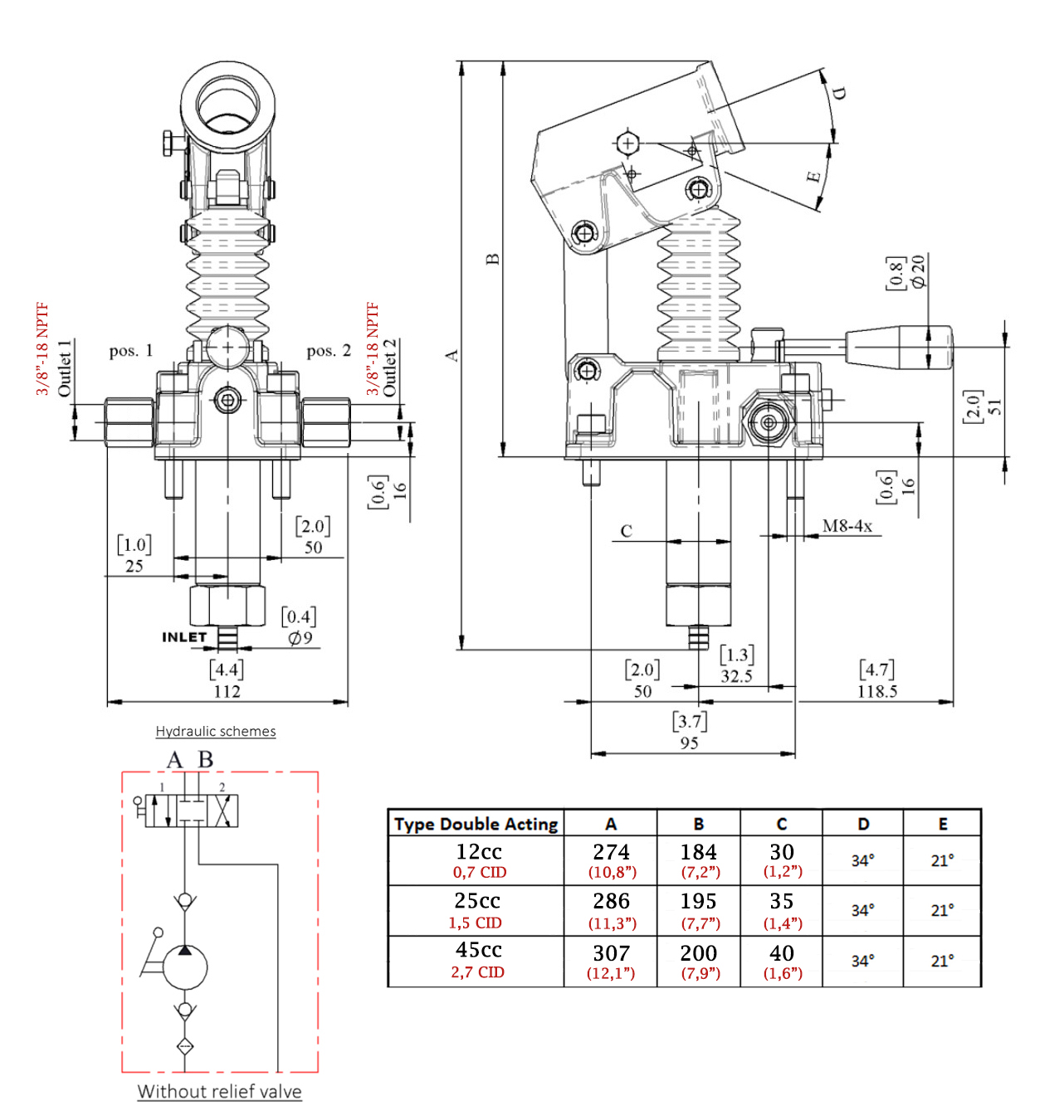 Double Acting Max Pressure: 0.7 CID (5500 Psi) , 1.5 CID (5100 Psi), 2.7 CID (4100 Psi)
