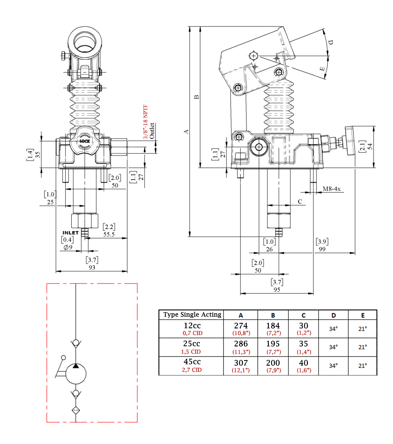 Single Acting Max Pressure: 0.7 CID (4400 Psi) , 1.5 CID (2300 Psi), 2.7 CID (1300 Psi)