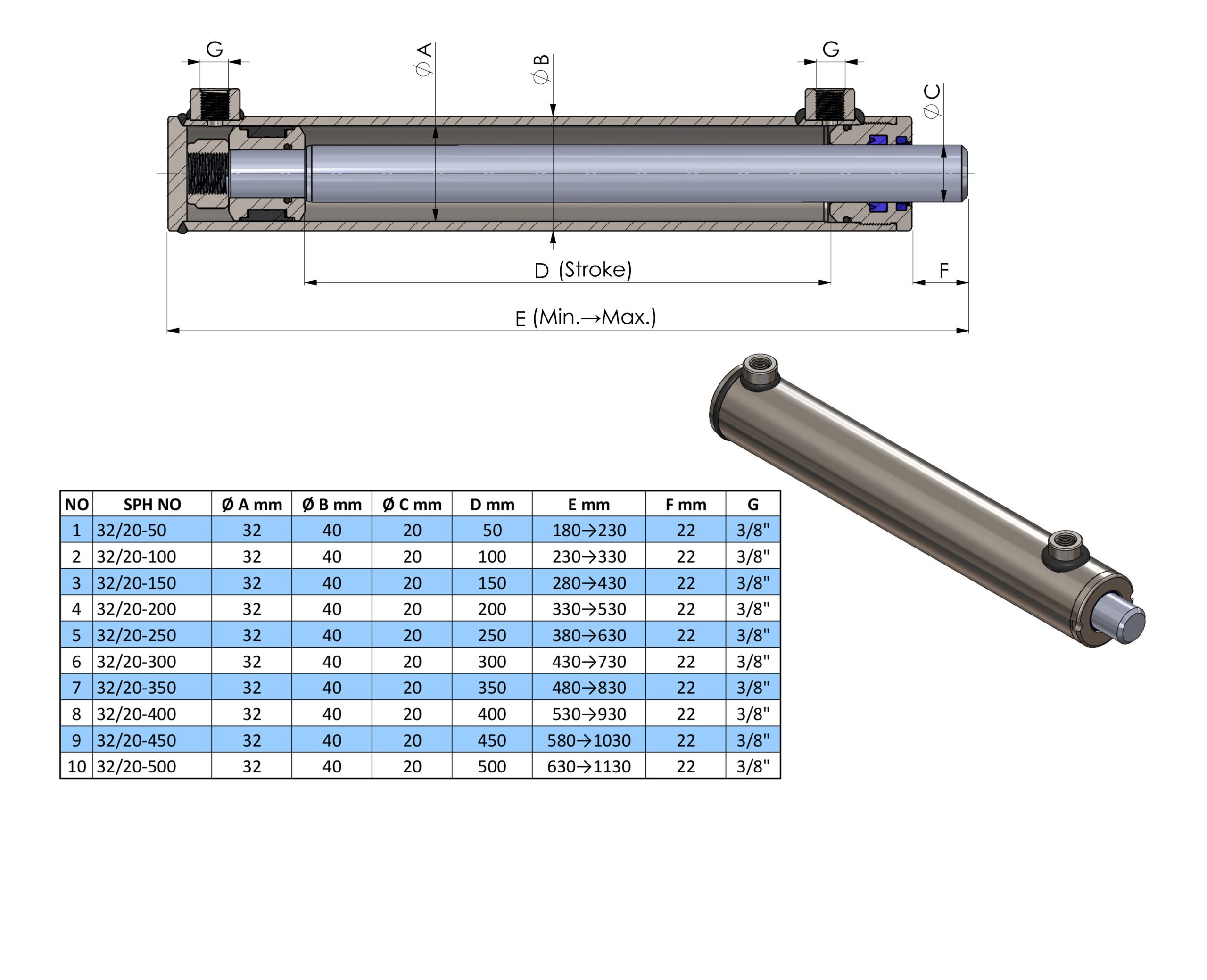 Cyl Tube and Rod Size: