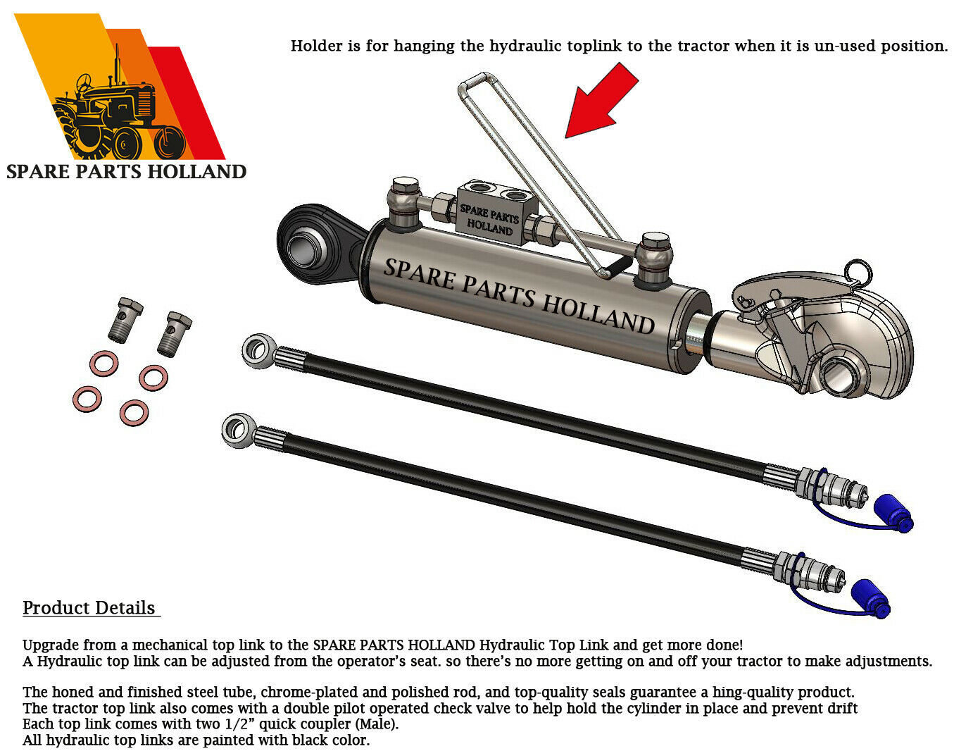 • Fast and reliable delivery – Spare Parts Holland packs your hydraulic top link in high quality boxes so that chances of damage are minimized. Your order will be shipped within 1 working day with high priority via our logistic partners. This means, in most cases, you will receive your order between 1 – 3 working days.