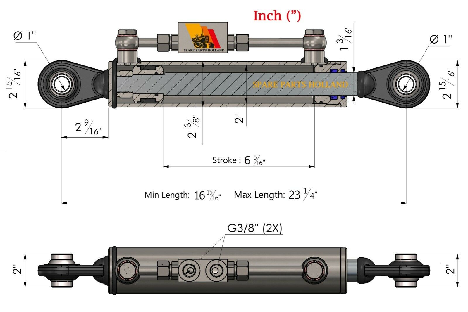 * When adjusting the top link, it is very important that the adjusted position is maintained even after a long period of time. This is hardly possible with top links without a locking block, because the tractor’s control units do not lock as tightly. This top link is therefore equipped with a locking block. With this valve, the oil in the cylinder is enclosed by a non-return valve. Only when oil pressure returns from the tractor does the valve open and the cylinder can be adjusted.