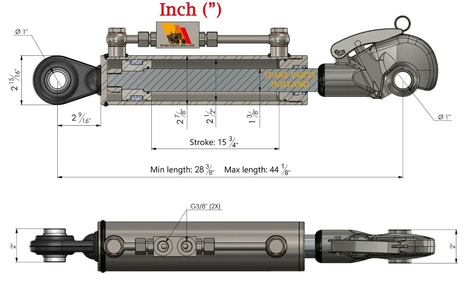 * When adjusting the top link, it is very important that the adjusted position is maintained even after a long period of time. This is hardly possible with top couplings without a locking block, because the tractor’s control units do not lock as tightly. This top link is therefore equipped with a locking block. With this valve, the oil in the cylinder is enclosed by a non-return valve. Only when oil pressure returns from the tractor does the valve open and the cylinder can be adjusted.